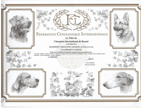 04.12.2011. WONDERFUL RESULTS FROM This weekend we went to a 2x CACIB Show in Austria We are so very proud of our 2,5 years young The results are: With this, Hildebert's IN STYLE (Tille) has become an International Champion! Congrats to Tille's owner Ligita Zilmane!!!!